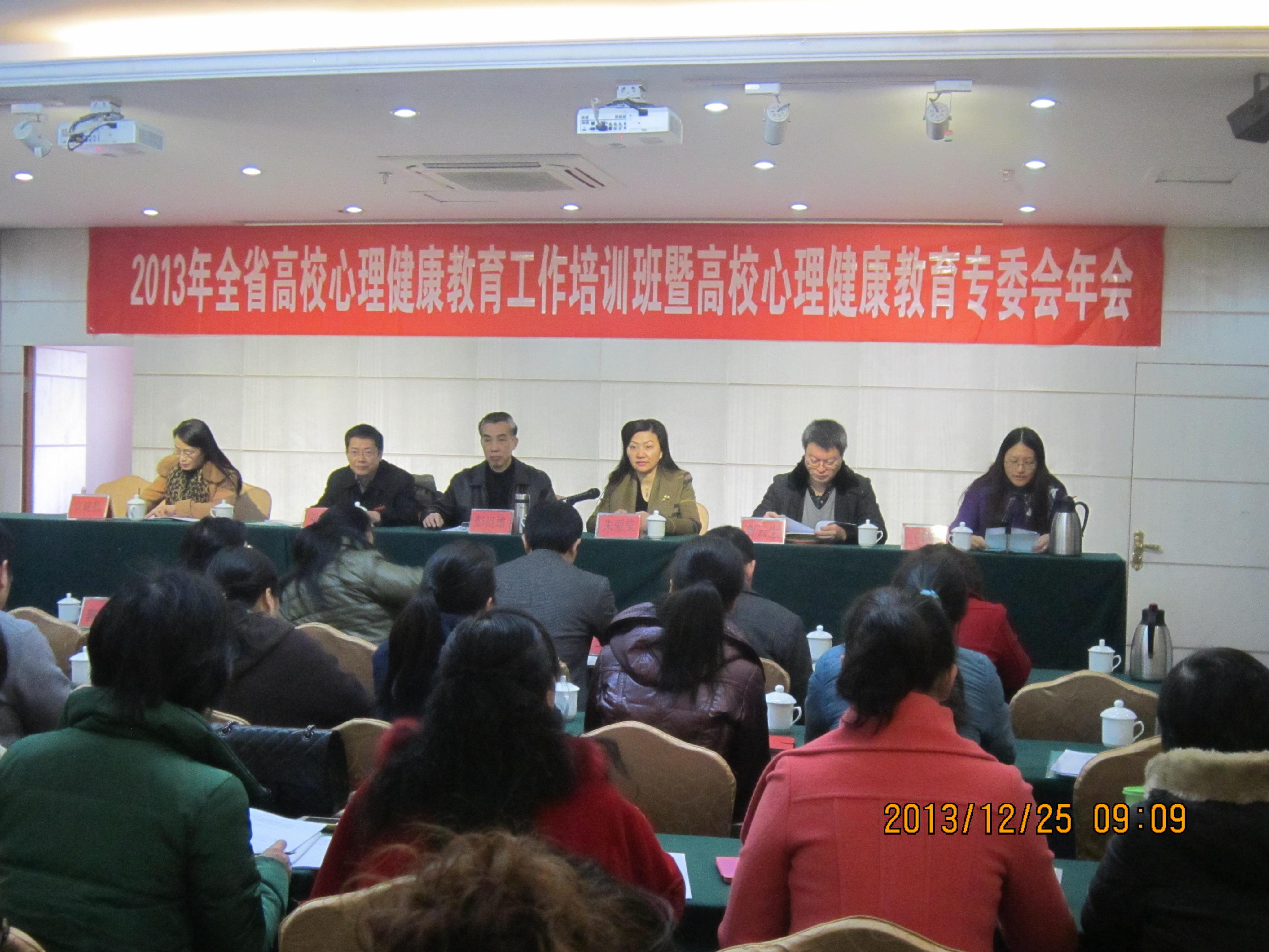 12月25日,2013年江西省高校心理健康教育工作会议暨省高校心理健康教育专业委员会2013'年会在南昌市红谷滩地中海阳光大酒店召开。江西省教育厅社政处彭祖雄处长和曹云生副处长、江西中医药大学党委书记刘红宁、江西科技师范大学朱爱莹副校长出席了本次会议,会议由江西省高校心理健康教育专业委员会秘书长王敬群主持,我校心理健康教育与咨询中心肖永红、戴益信两位老师参加了本次会议。