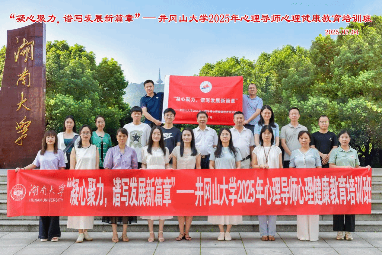 “凝心聚力,谱写发展新篇章”,井冈山大学2025年心理导师心理健康教育专题暑期培训班于2025年7月3日举行。校党委常委、副校长敖四江出席开班会仪式并讲话。培训班学习在7月3日-7日在长沙顺利举行,学校学生工作部(处)负责人、心理健康教育与咨询中心专职教师和各学院心理导师共计20人参加了此次培训。