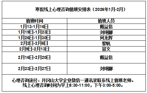寒假线上心理咨询值班安排表(2026年1月-2月)
