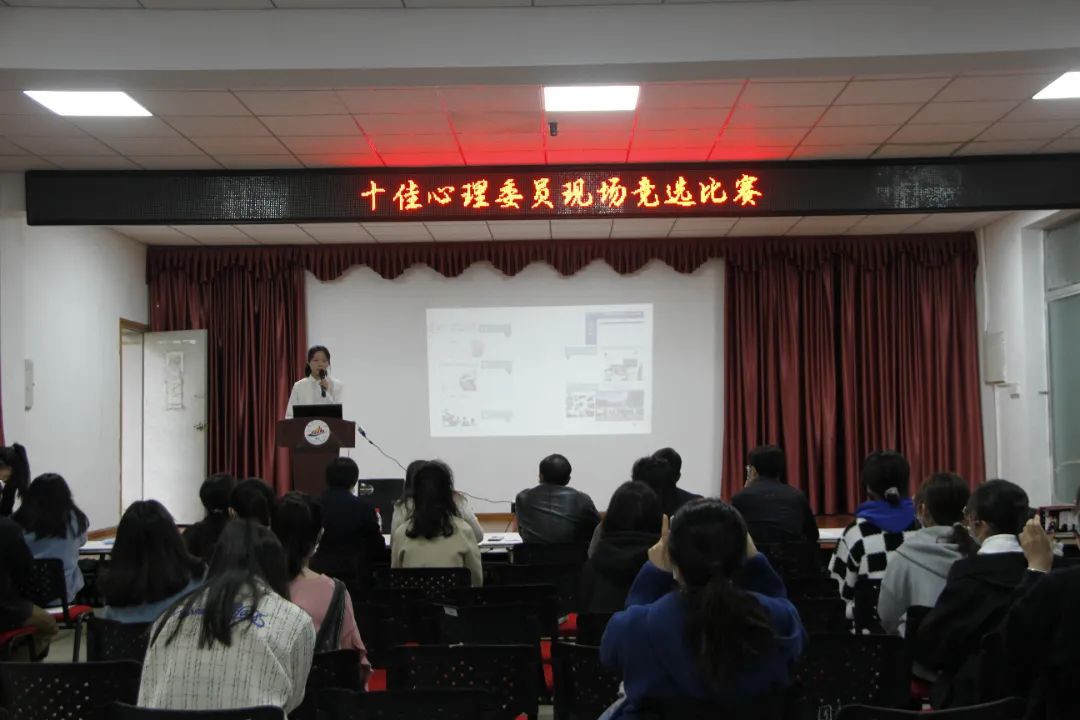 视频评选赛,总共十四个参赛视频依次播放,视频内容大多活泼生动,展示了心理委员们的平时工作以及与同学们交流和沟通的日常。现场竞选赛,选手按抽签顺序进行演讲,他们从容不迫,自信大方,热情洋溢,语言流畅,演讲完毕后,评委老师进行了评分。
