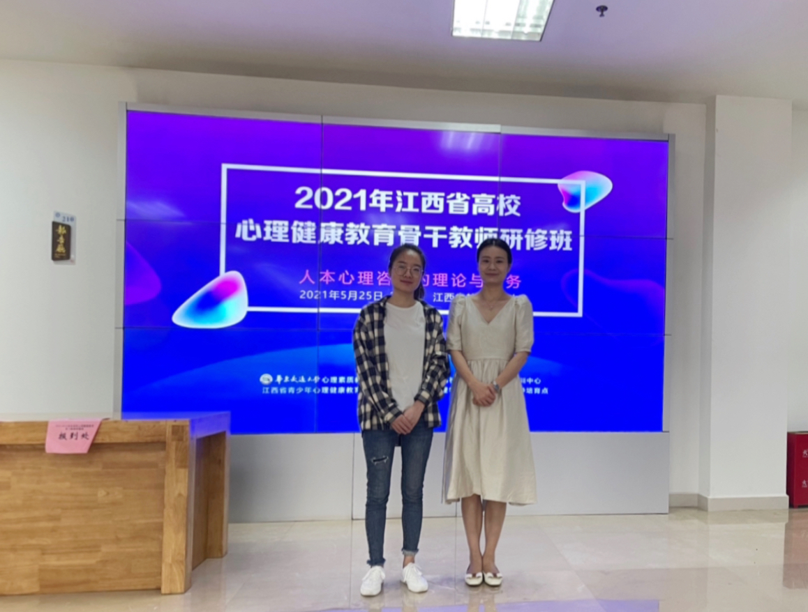 2021年5月25日-28日,江西省高校心理健康教育骨干教师研修班在华东交通大学举办,我校心理健康教育与咨询中心刘琍娜和机电工程学院心理导师黄秀兰两位教师参加了本次培训。