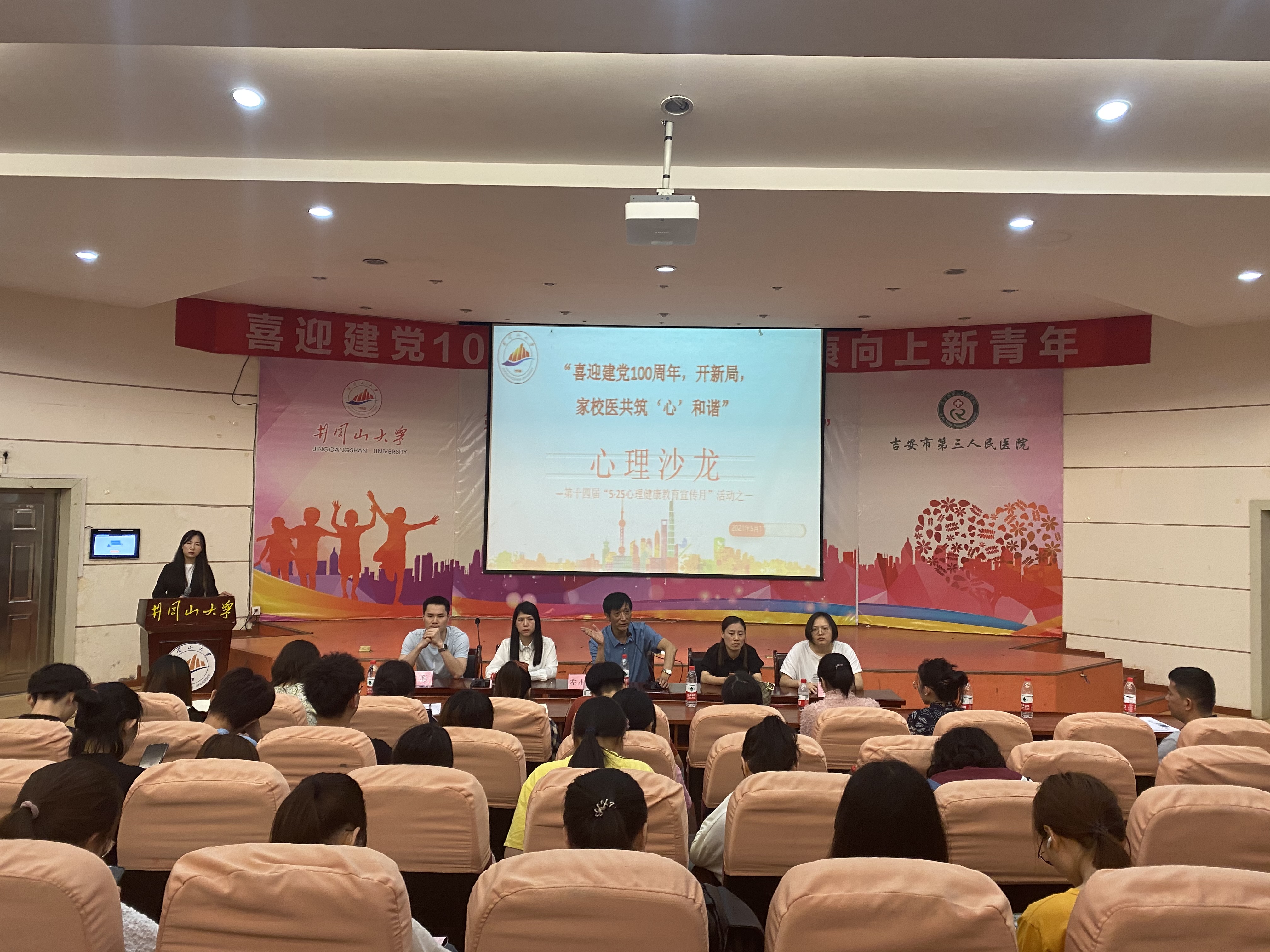 5月11日晚7:30-9:00,学校心理健康教育与咨询中心在十栋学术报告厅举办了“喜迎建党100周年,开新局,家校医共筑‘心’和谐”心理沙龙活动,邀请了吉安市第三人民医院党委委员、心理科主任、主任医师左小云,吉安市第三人民医院心理科一区主任、副主任医师左红英,吉安市第三人民医院心理治疗医师、主治医师李娟,心理咨询师、心理治疗师李德馨、文聪五位嘉宾。各学院(部)分管学生工作领导、学生科科长、心理导师、班级心理委员和学生代表,心理健康教育与咨询中心全体工作人员参加了本次活动。