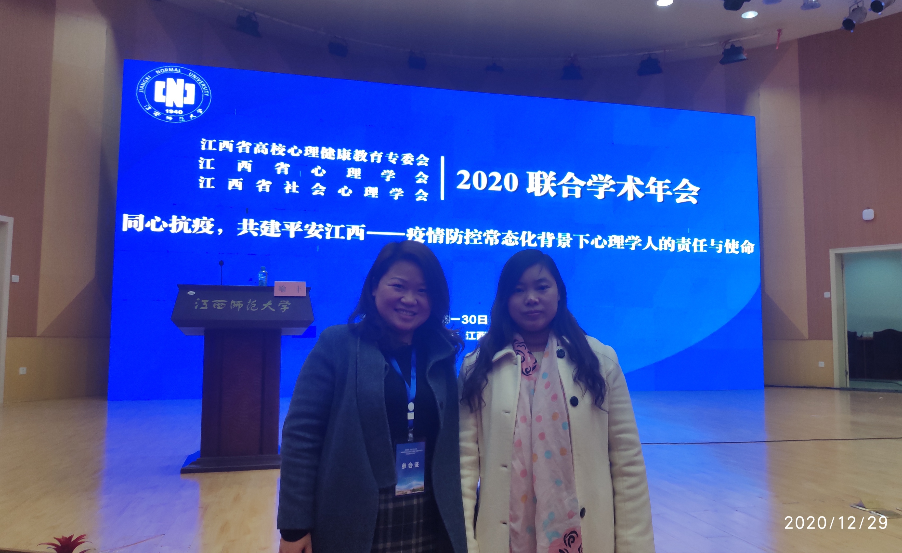 12月28日-30日,江西省高校心理健康教育专委会、江西省心理学会、江西省社会心理学会2020年联合学术年会在江西师范大学瑶湖校区举行,省教育厅二级巡视员杨美珍出席了会议并讲话,来自全省各高校140余人参加了会议,我校心理健康教育与咨询中心主任阳朝、中心专职教师万露到场参会。
