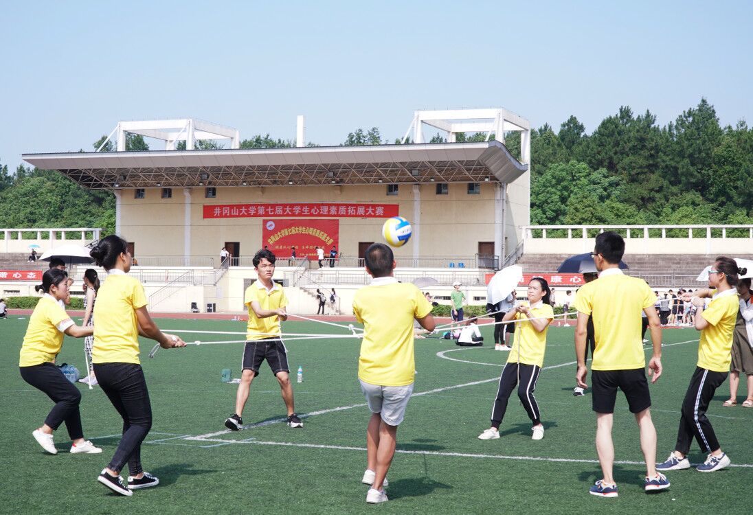 5月26日,井冈山大学第七届大学生心理素质拓展比赛在学校塑胶田径场举行,本次比赛由心理健康教育与咨询中心主办,共有来自全校16个学院(部)的16支参赛队伍128名学生参加本次比赛,学生工作部(处)主要领导、部分学院党委副书记和学生代表到场观看了比赛。