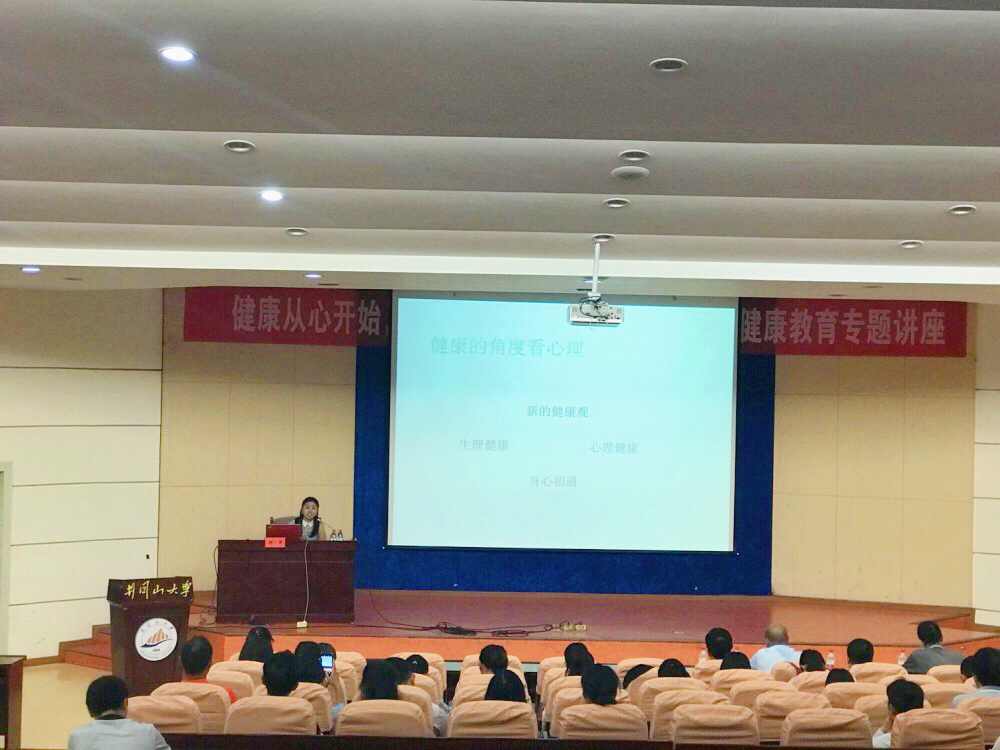 胡萍副教授从健康的角度看心理开始这场讲座,详细介绍了量表与诊断、心理特点、应对策略;随后阐述大学生时期的心理特点;并结合案例说明辅导员对大学生应持的态度;最后介绍了用沙盘疗法解决心理问题的案例。