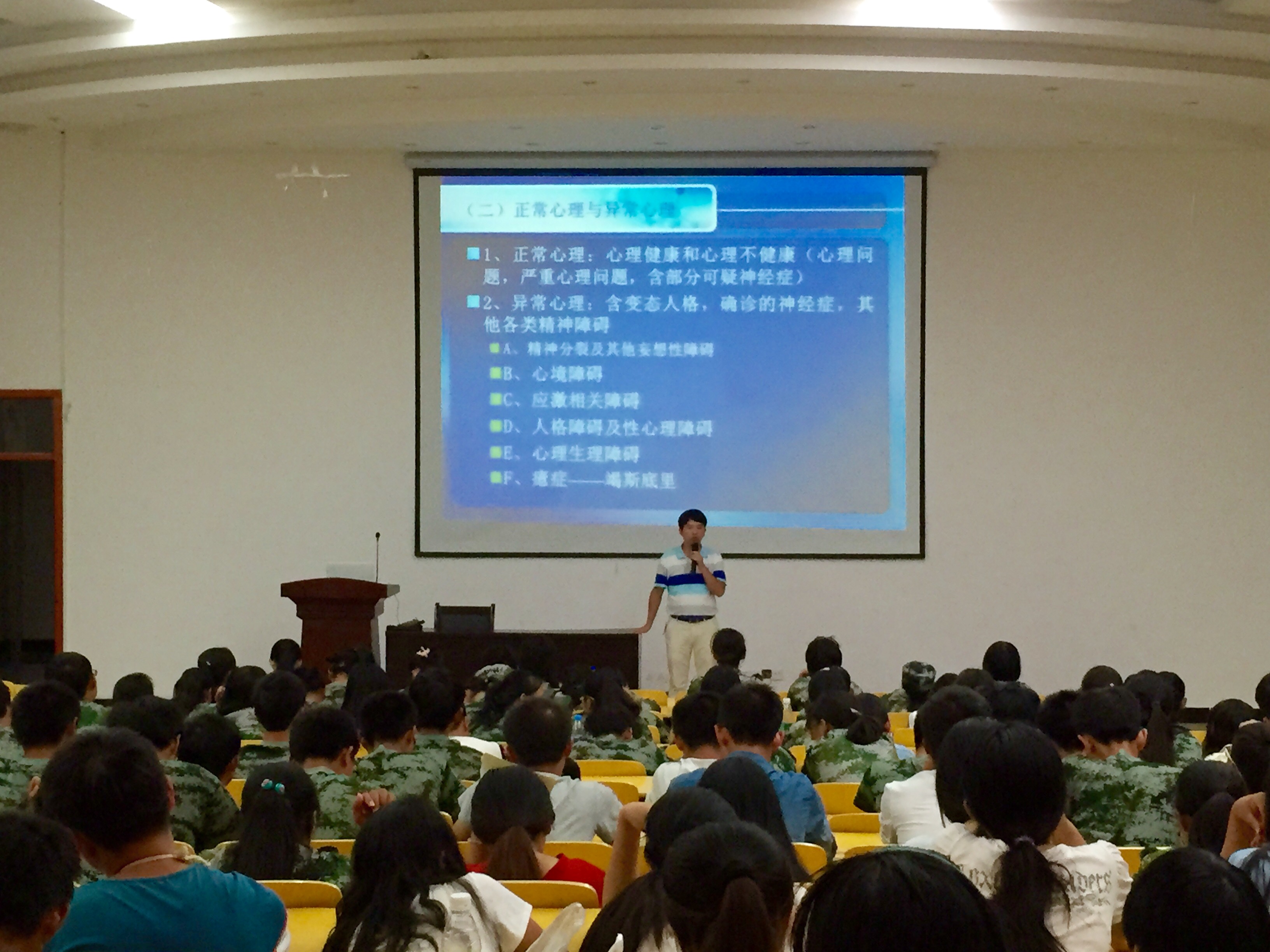 为提高大学生的心理健康素质,合理应对各类心理问题,强化大学生心理健康自助与互助意识,9月21日和9月22日晚,医学部举办了心理健康知识讲座。特邀心理健康教育与咨询中心戴益信老师主讲,2015级全体新生及新生班主任辅导员聆听了此次讲座。 讲座中,戴益信老师首先介绍了心理学的基本知识,带领大家初步认识心理健康。随后,他结合真实案例分析了大学生普遍存在的心理问题,包括学业、情绪、恋爱、人际关系、就业等,引导新生树立正确的人生观、价值观。接着,戴益信老师着重讲解了大学生处理心理问题时的正确方法,并详细介绍了学校心理健康教育与咨询工作。