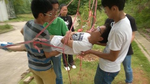 在辅导员老师、队长的带领和指导下,全体队员积极参与了千里送水、穿越电网、鼓舞飞扬等多个项目的体验式赛前训练,其间的欢乐和感悟记在了每个人的心间。穿越电网挑战并重新认识自我,禁止触摸让大家明白有些规则不但不是限制,而恰恰是解决问题的提示,克服惯性思维方能突破创新……虽然每一个项目的侧重点不同,但是经过几天的赛前训练,让我们懂得了团队项目不是单凭一两个人的冲动和体力就能完成的,一个人的成功不能代表整个团队的成功,只有团队中的个体相互信任,相互支持,才能共同达到团队的目标。