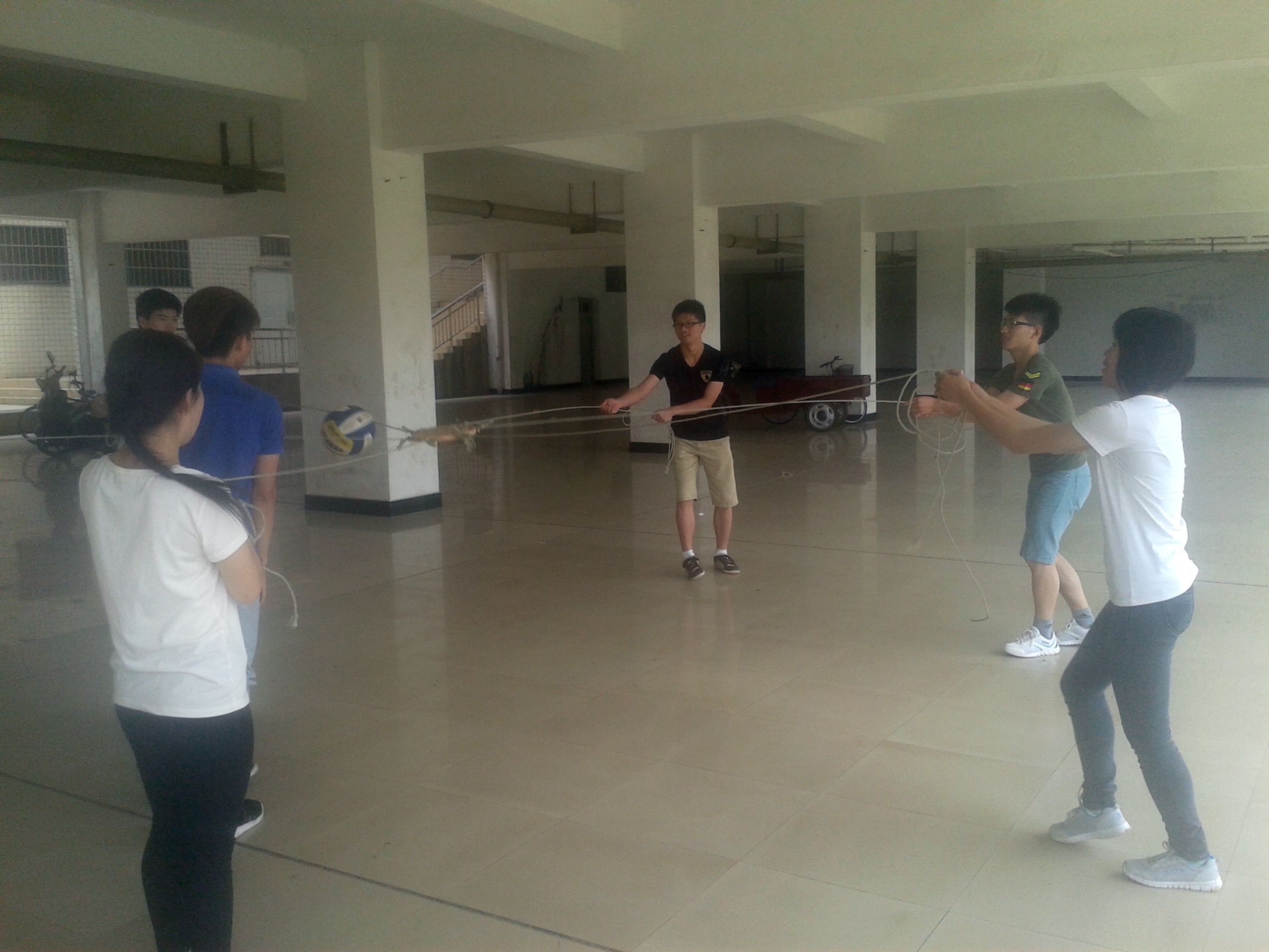 我院由郑晓墩等人组成的医学院代表队参加此次大学生心理素质拓展比赛。为了能在比赛中更好的发挥,5月15日中午12点半,医学院代表队在10栋地下室开始进行连续多天的训练,以做好充分的准备。训练的项目包括“穿越电网”、“禁止触摸”、“鼓舞飞扬”和“千里送水”4个项目。这些项目很考验同学们的团队合作配合能力、智慧互助能力及抗挫心态,不仅可以培养团队的科学决策方法、严谨细致的工作作风和团队精神,并能增强团队凝聚力、默契。所以必须经过长期刻苦的训练,才能在比赛中取得优异的成绩,以此一展医学院风采。