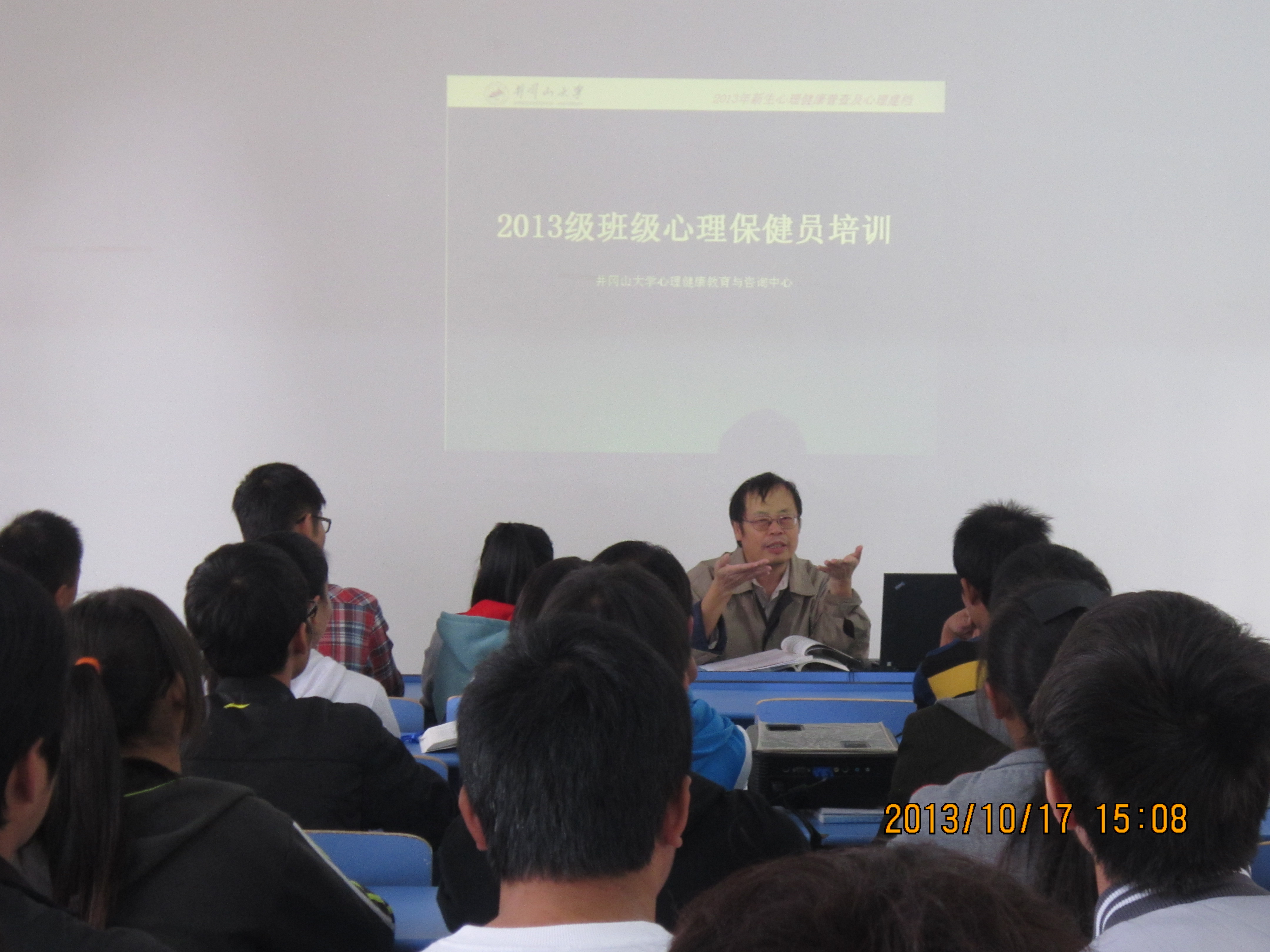 10月17日下午,在大学生活动中心心理培训室举办了2013级班级心理保健员岗前培训,培训由心理健康教育与咨询中心副主任肖永红老师主讲,来自各学院2013级98名班级心理保健员参加了培训。