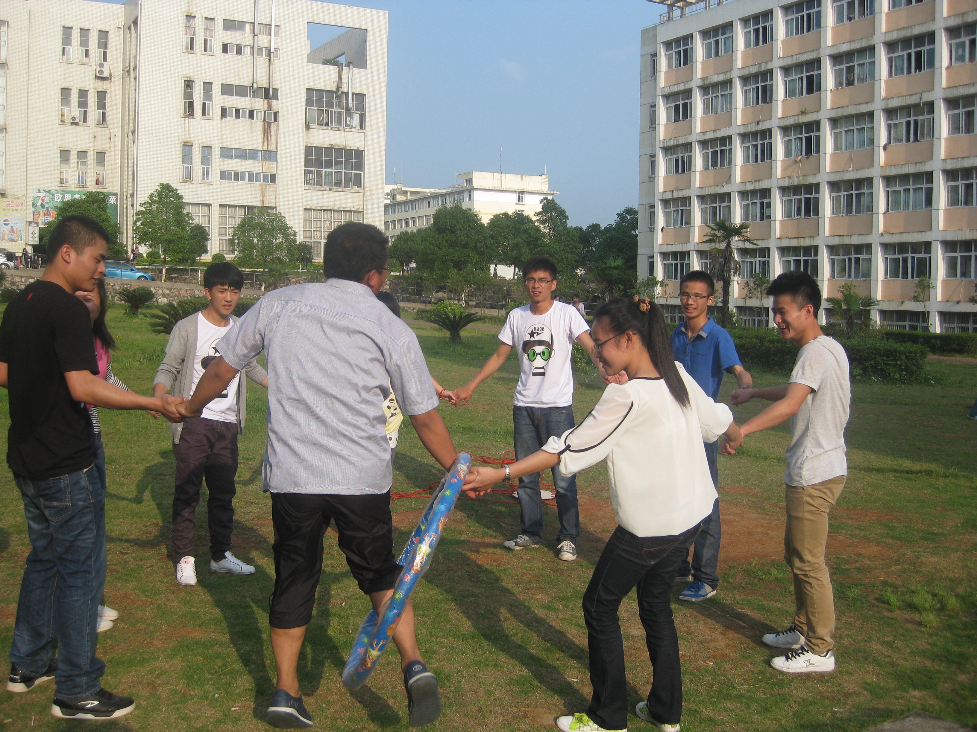 “疯狂呼啦圈”活动主要是考察团队成员的一致、密切合作、客服困难的团队精神及其计划、组织、协调能力。训练过程中,郭老师根据队员的不同情况对其进行指导,加强他们技术的规范化、标准化,使运动员的各项技能都有了明显提高。