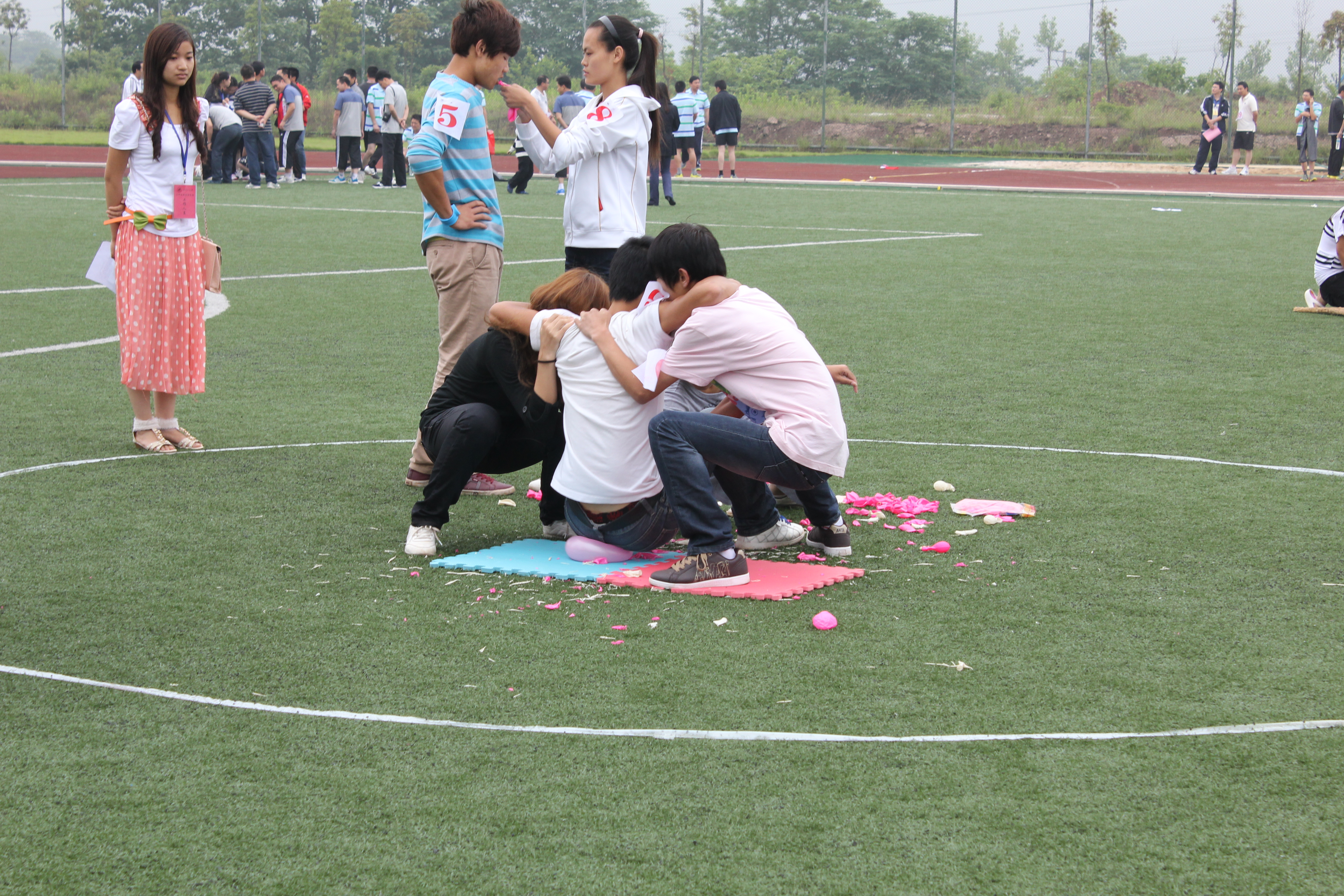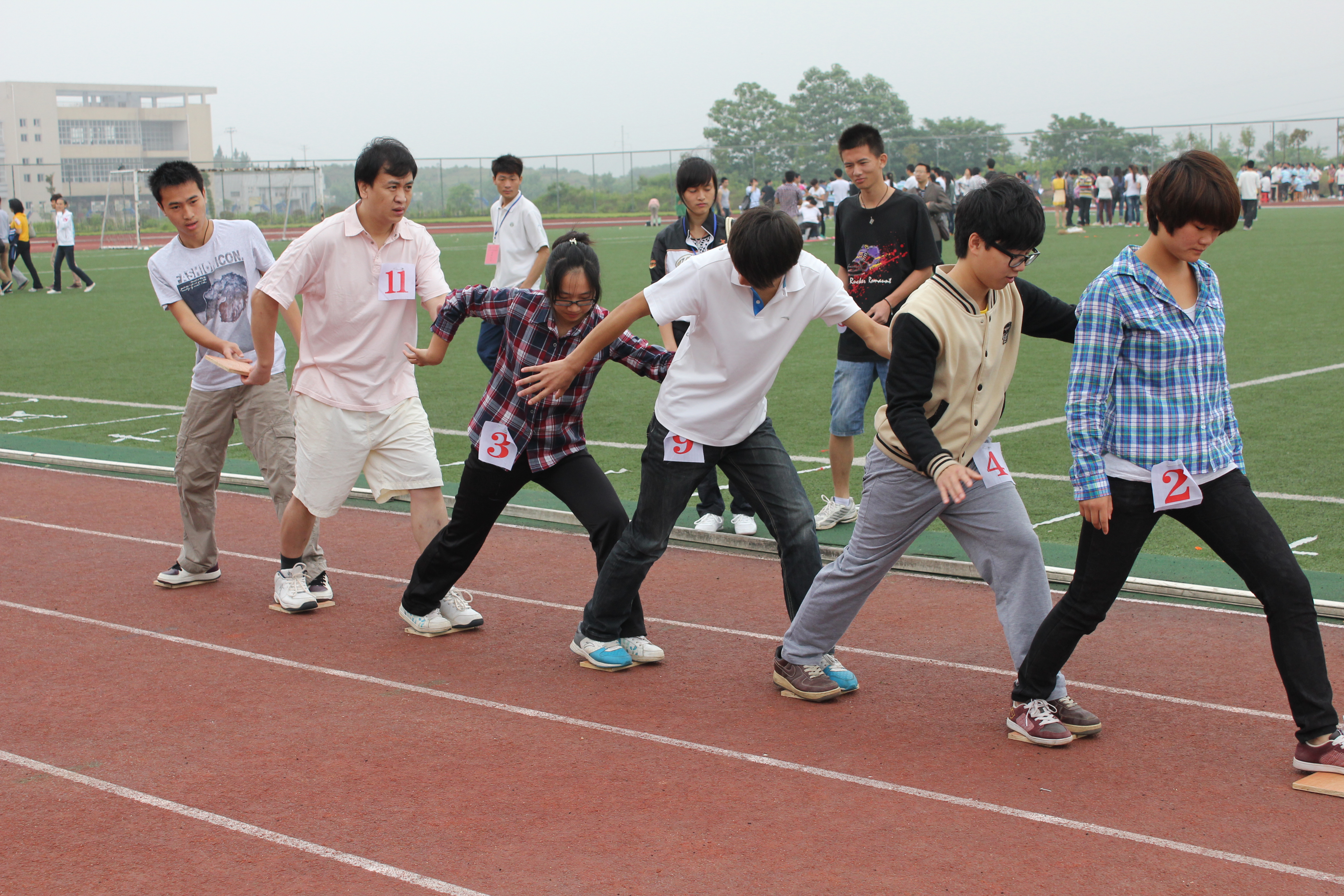 5月26日上午,我校首届大学生心理素质拓展大赛在学校北区田径场举行。来自各学院的15个代表队共计200多人参加当天的比赛。