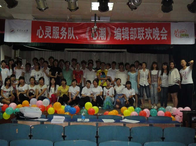 井冈山大学学工处心灵服务队、《心潮》编辑部联欢晚会于2012年5月18日在六栋演奏厅成功演出。学工处心理咨询科肖永红、戴益信、于文军老师出席并观看此次演出。心灵服务队和《心潮》报社的各位成员共同参演本次晚会。