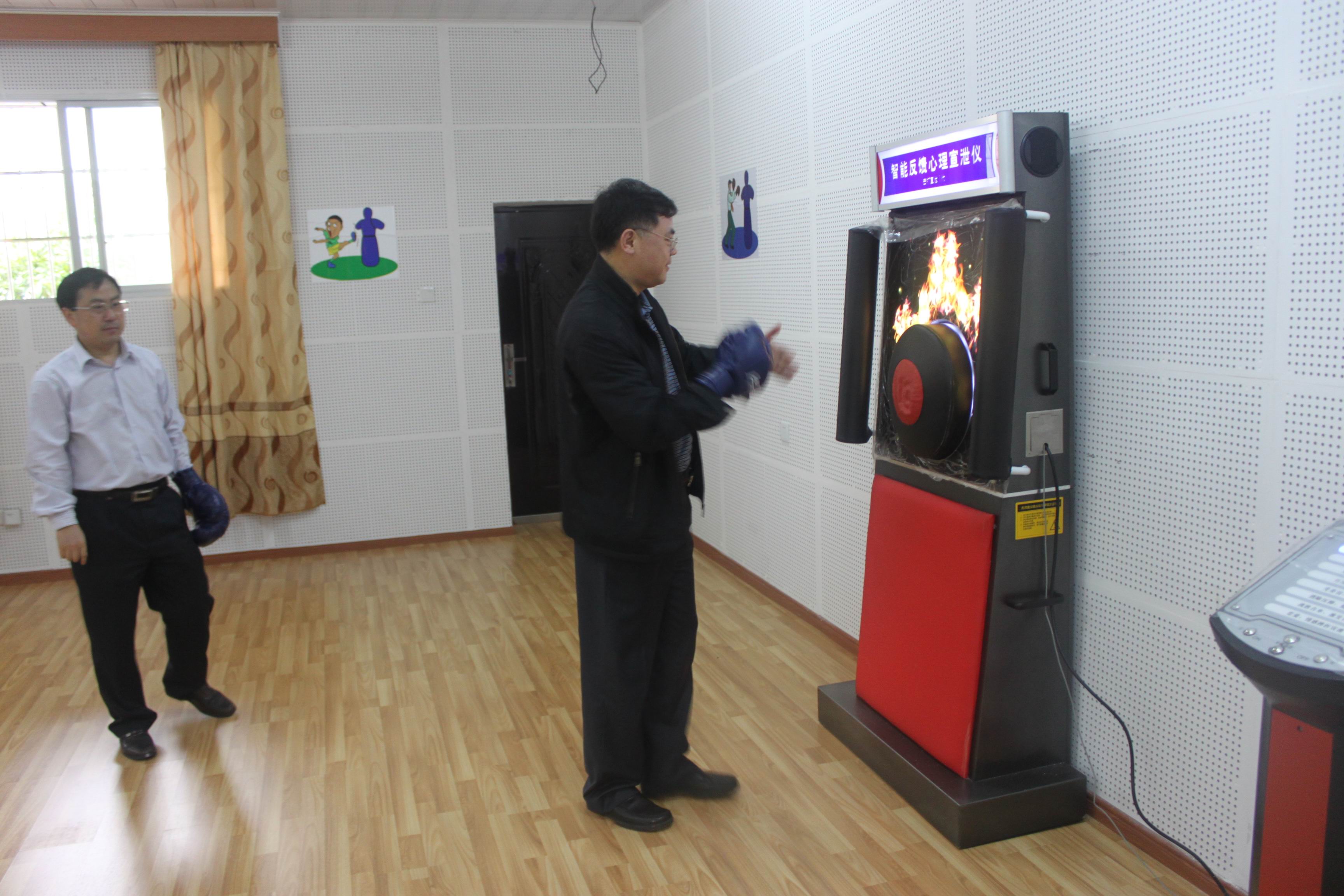 5月2日下午,桂国庆副校长、肖长春副校长到学生工作处视察新建的情绪宣泄室,两位校领导兴致勃勃地体验了室内的宣泄器材,并指出,情绪宣泄室是大学生缓解心理压力、释放不良情绪的好场所,学生工作处要加强管理,尽快投入使用,为学生服务。