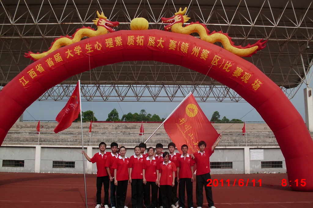 在6月11日结束的江西省首届大学生心理素质拓展大赛(赣州赛区)比赛上,我校学工处组织代表队参赛,凭借当天队员的出色发挥,取得暂居地市二区大赛第二名的成绩。