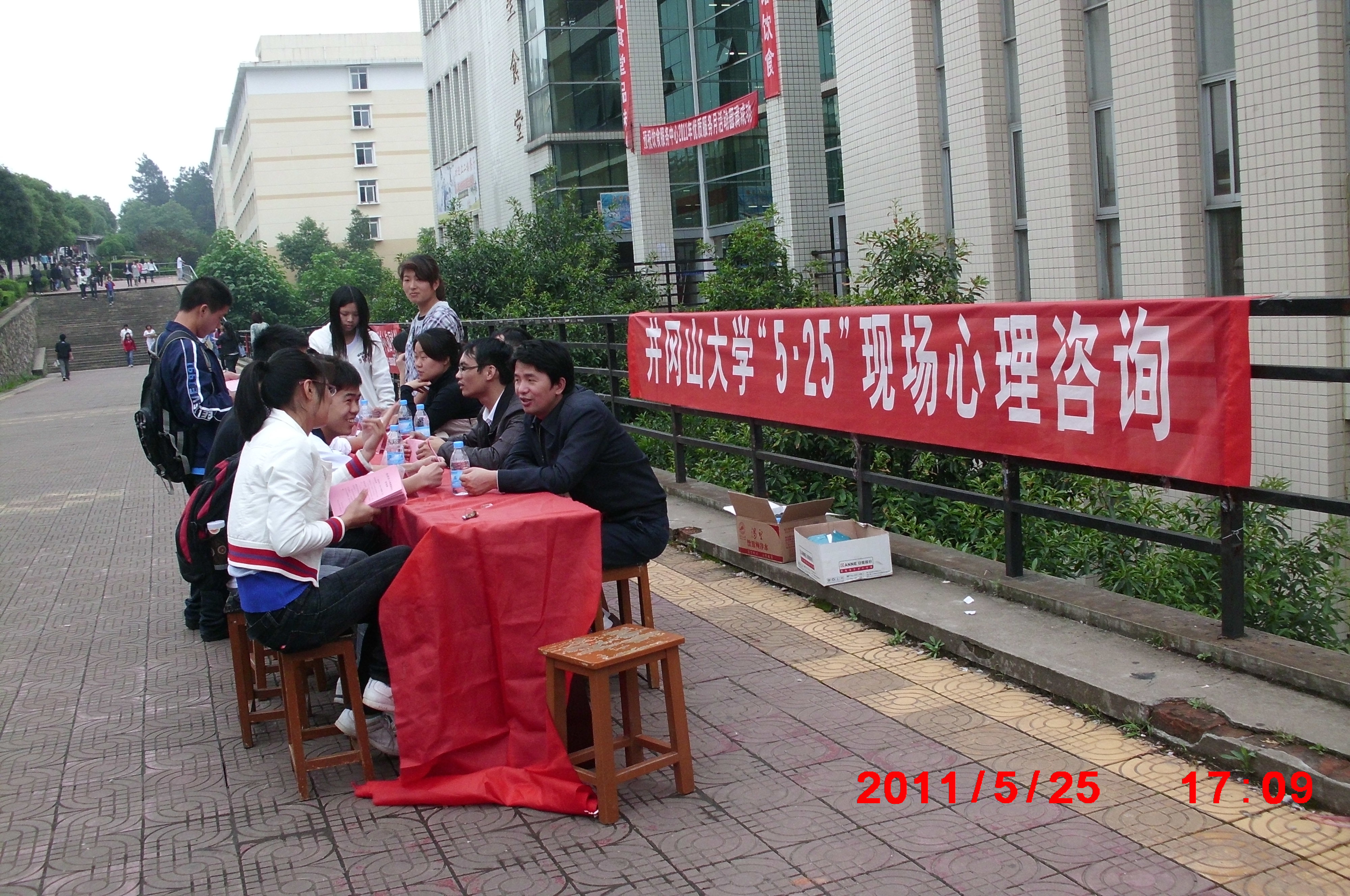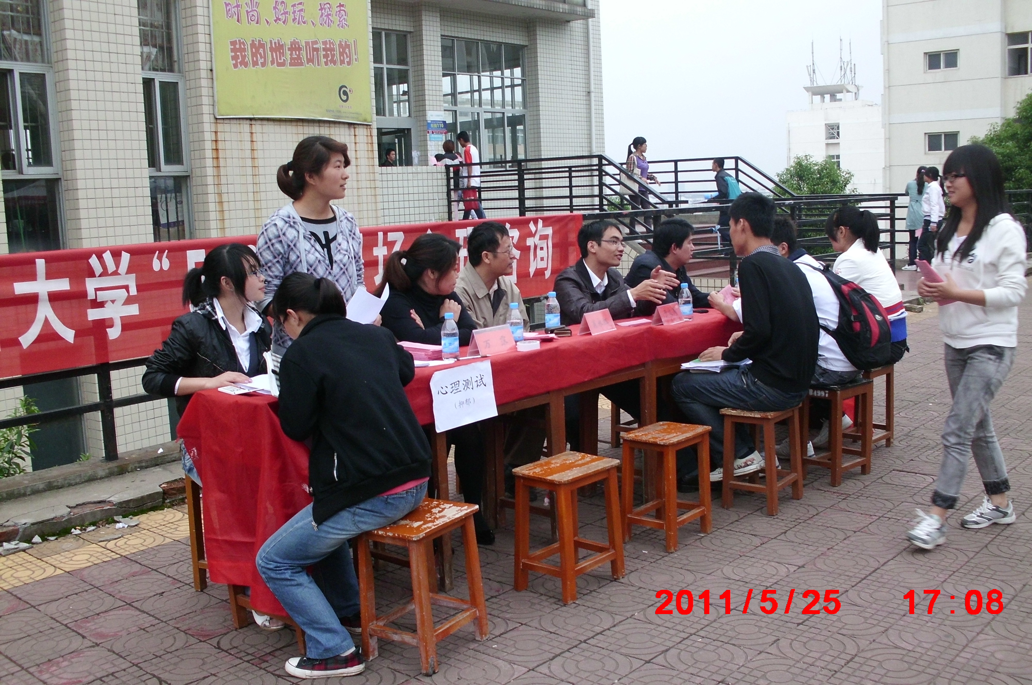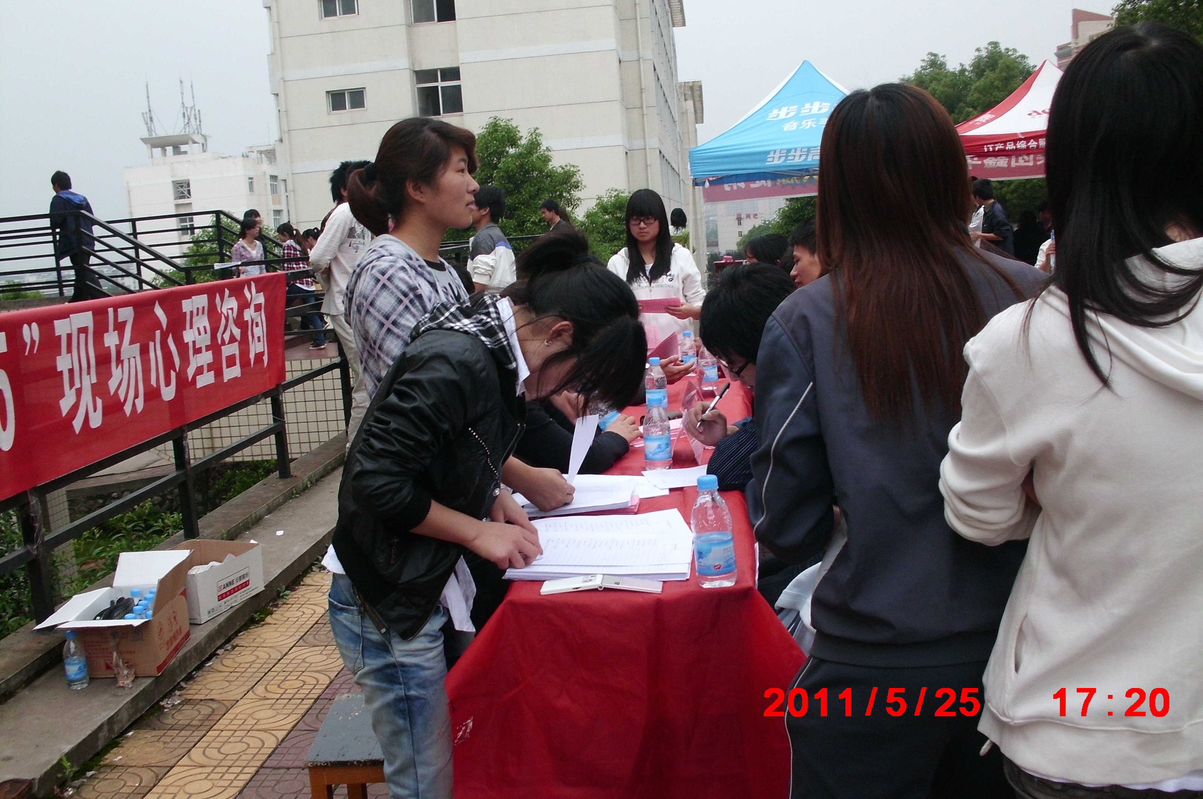 5月25日下午,在9栋教学楼前人头攒动、彩旗飘扬,由学工处心理咨询科组织的现场心理咨询活动在这里举行,学工处心理咨询科全体老师参加了这次活动,参加现场活动的还有校心灵服务队、部分心理学专业学生。