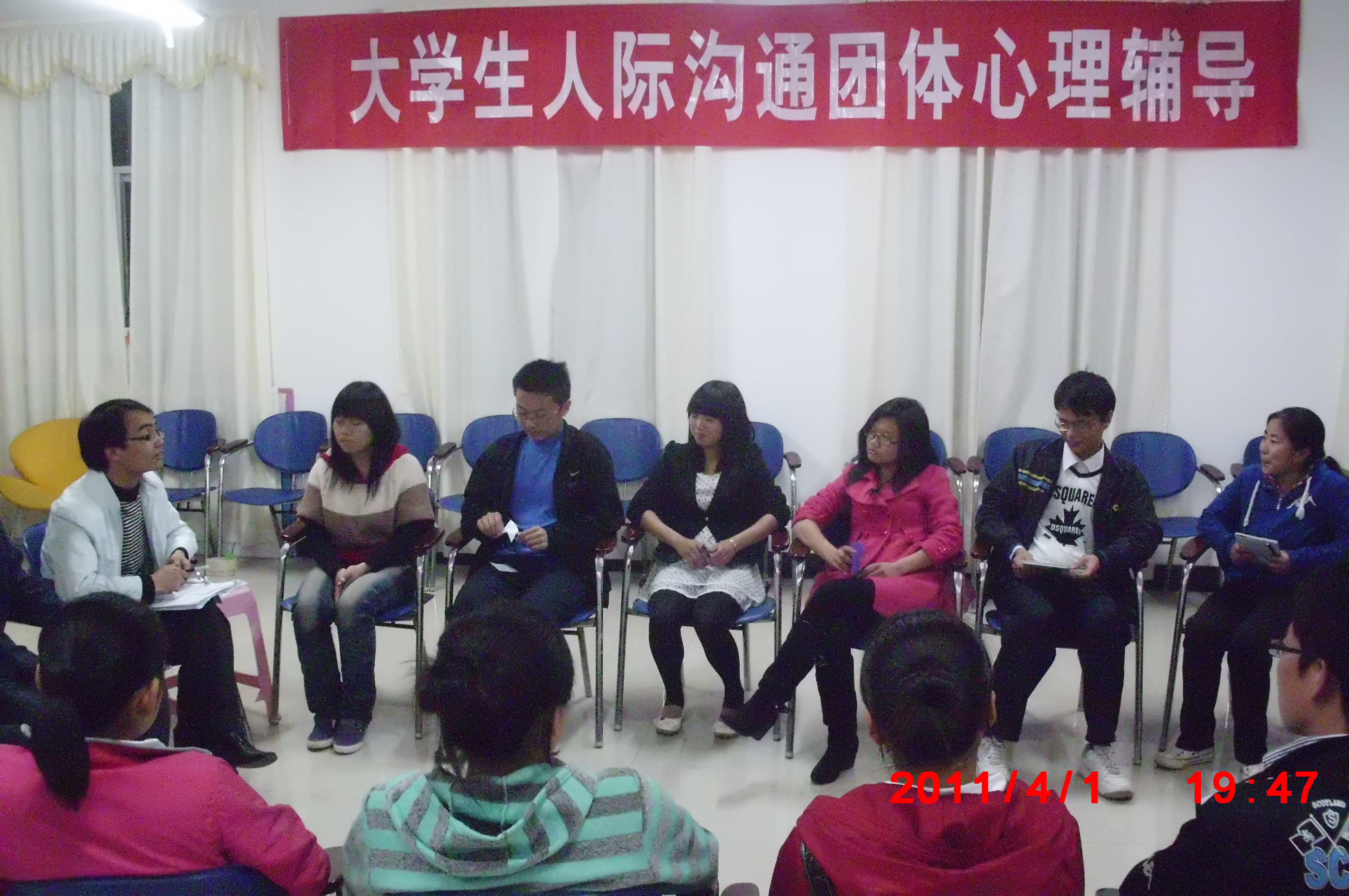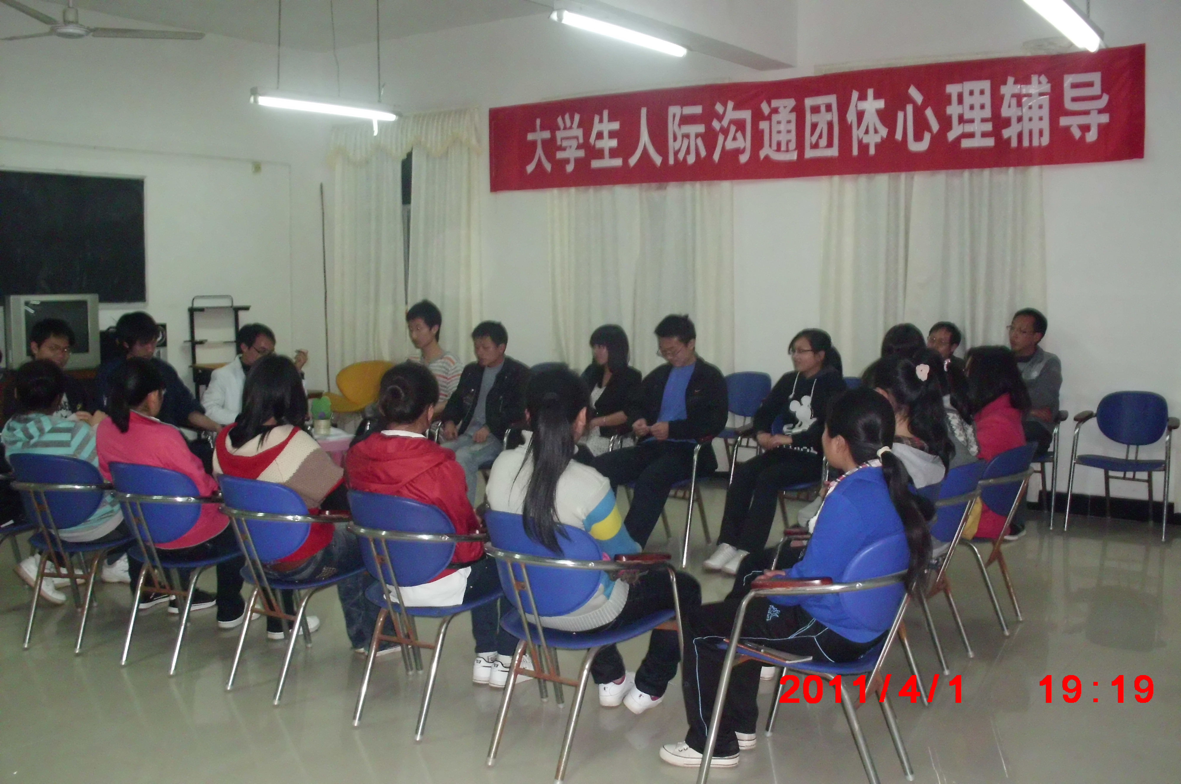 4月1日晚上7:00,学工处心理咨询科启动了2011年首期大学生人际沟通团体心理辅导活动。活动旨在通过“心理游戏”、知识讲座等形式,促进大学生适应环境、习得人际沟通技巧、建立互信互助关系、提高应对困难和挫折的能力,整个活动分3个单元,集体会晤6次。参加活动的18位同学分别来自护理学院、化学化工学院等10个学院,活动由心理咨询科于文军老师主持开展。