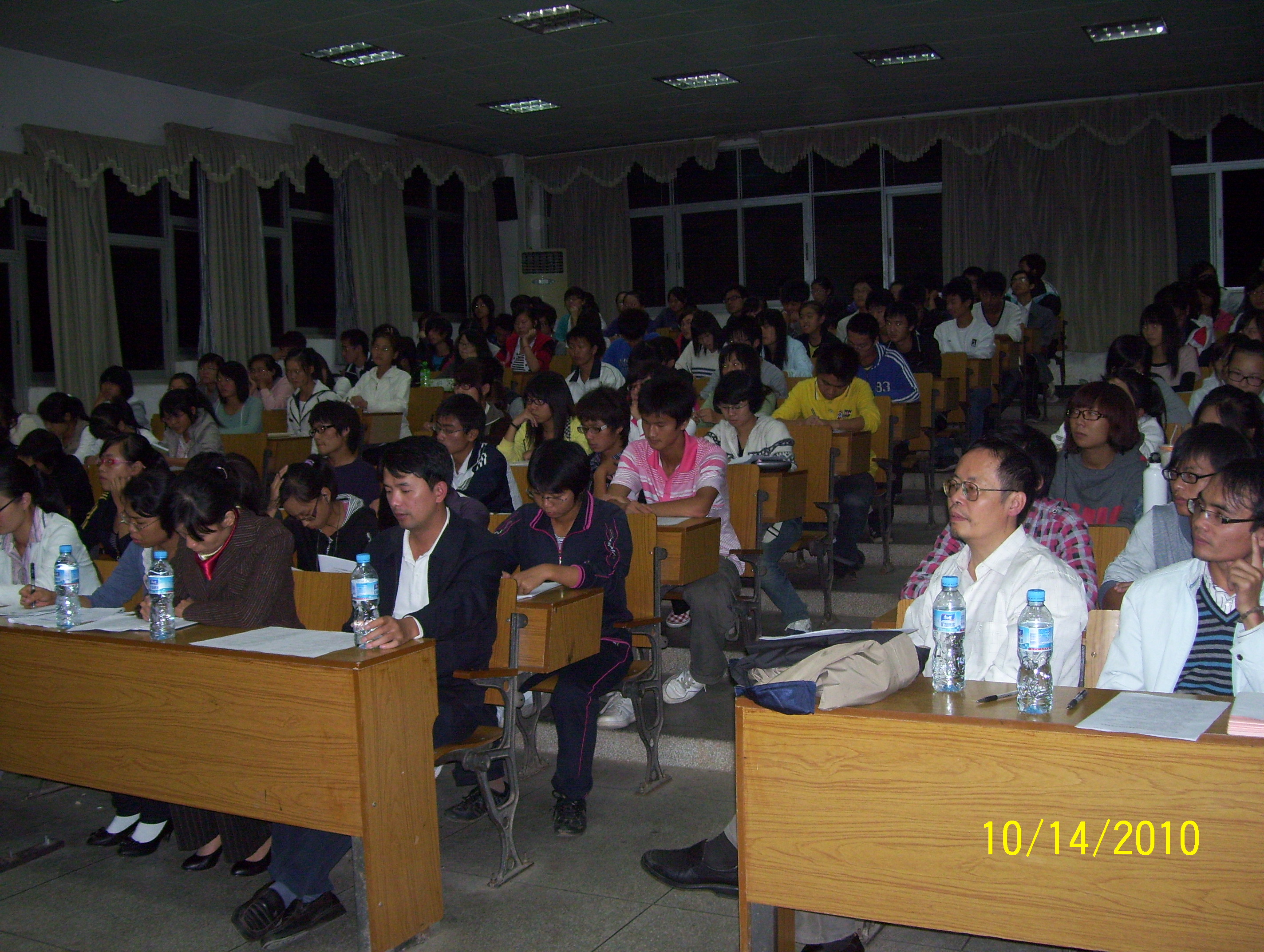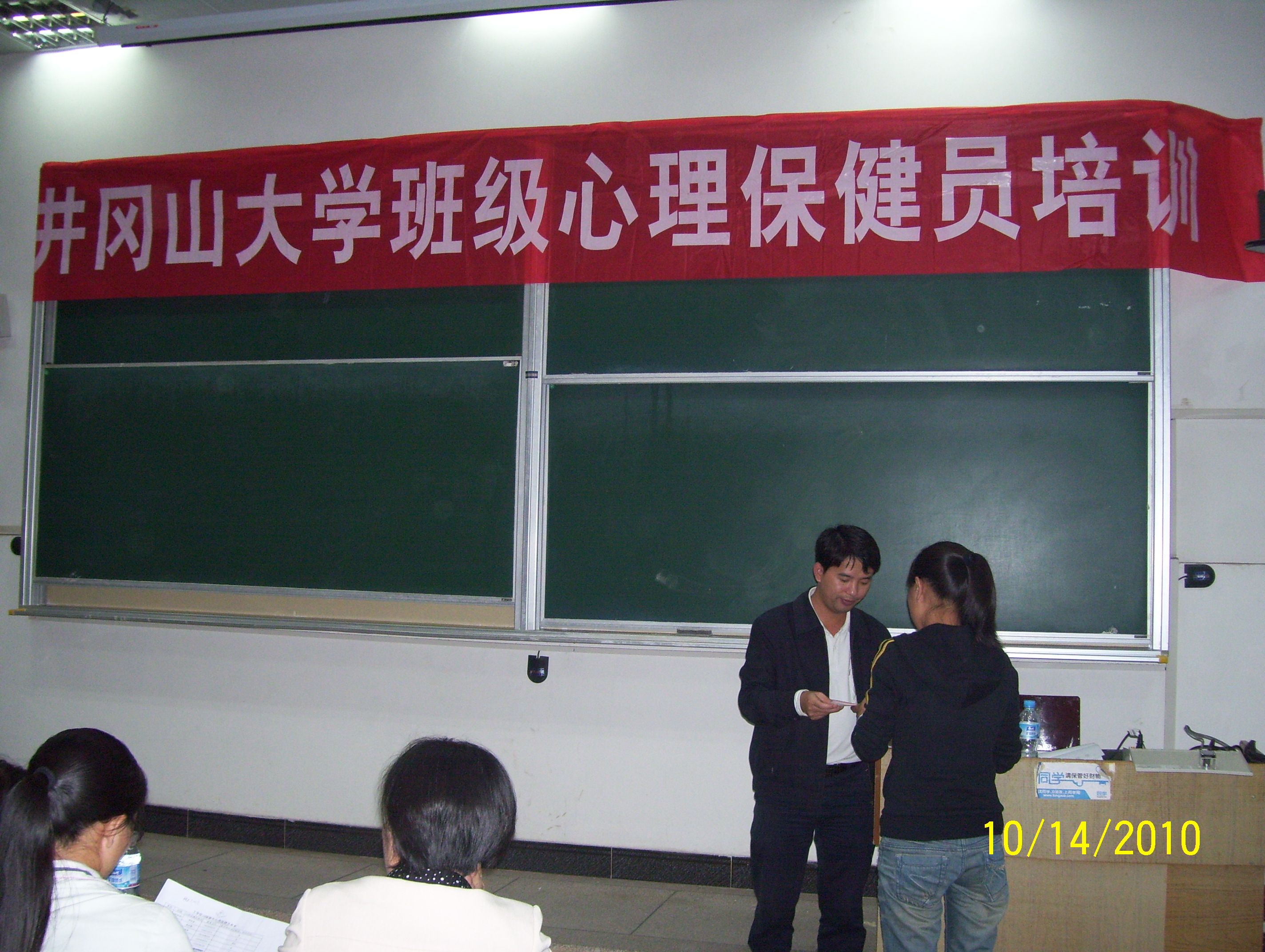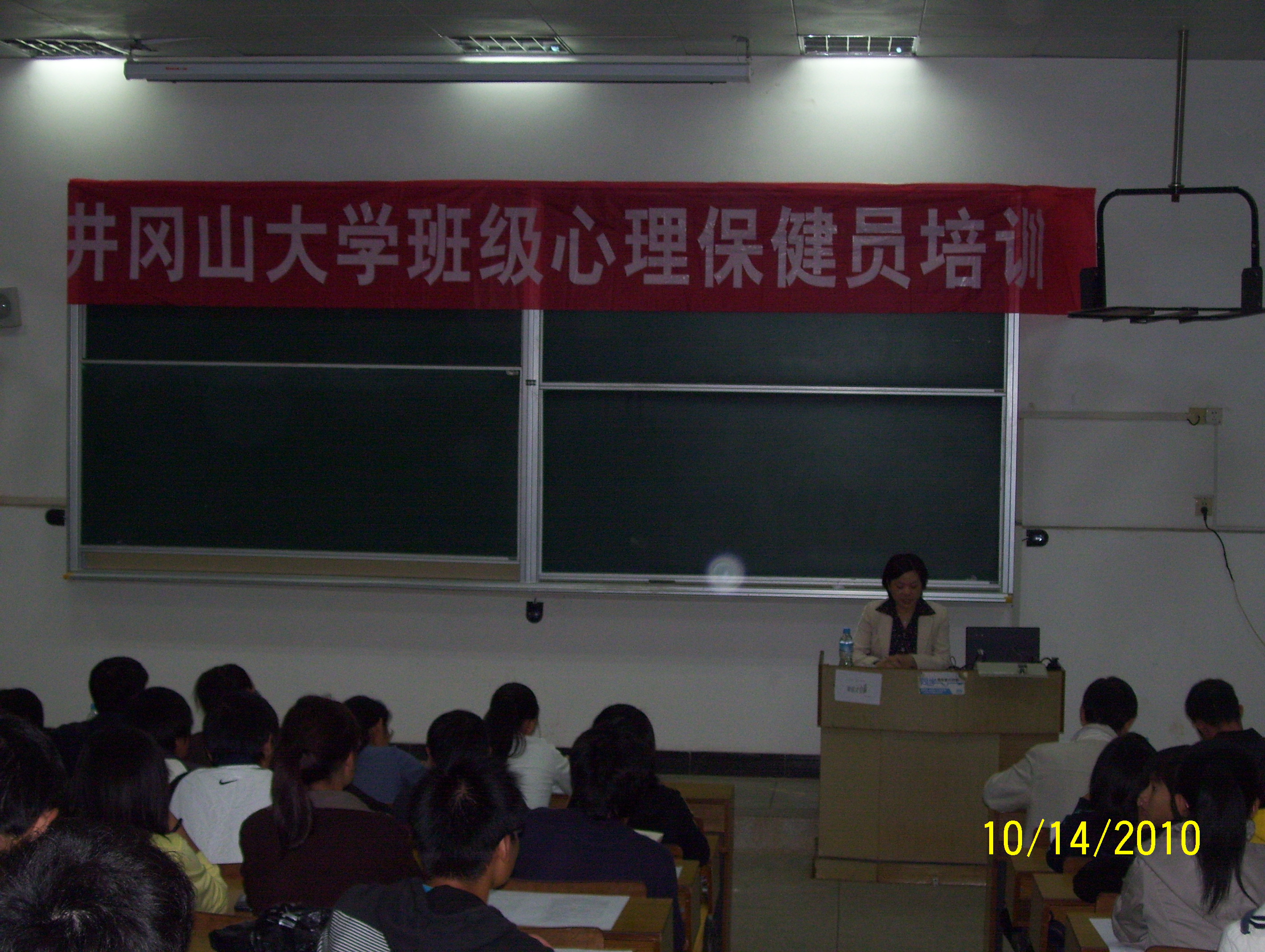 10月14日晚上,学生工作处在5栋407教室举行2010级新生班级心理保健员岗前培训。参加此次培训活动的人员有学工处相关人员、各学院心理健康教育工作干事、2010级各班班级心理保健员共计120余人。 此次培训目的是为了贯彻落实江西省教育厅《关于在全省高校建立班级心理保健员制度的通知》精神,加强大学生心理危机干预体系的建设,充分发挥学生在心理健康教育中的自助与互助作用。