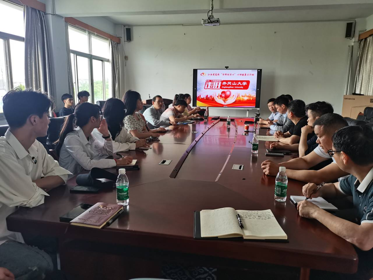 为进一步推动全省“万师润万心”心理健康大行动,构建“三全育人”格局,提升学院心理育人能力,为学生心理健康护航,5月4日下午,井冈山大学化学化工学院特邀江西省"万师润万心"讲师团成员、江西省第三届百场辅导专家组成员、井冈山大学心理健康教育与咨询中心主任戴益信老师到学院开展《校园心理危机识别与处理》专题讲座。学院班子成员、辅导员及部分班主任、心理委员聆听了讲座。