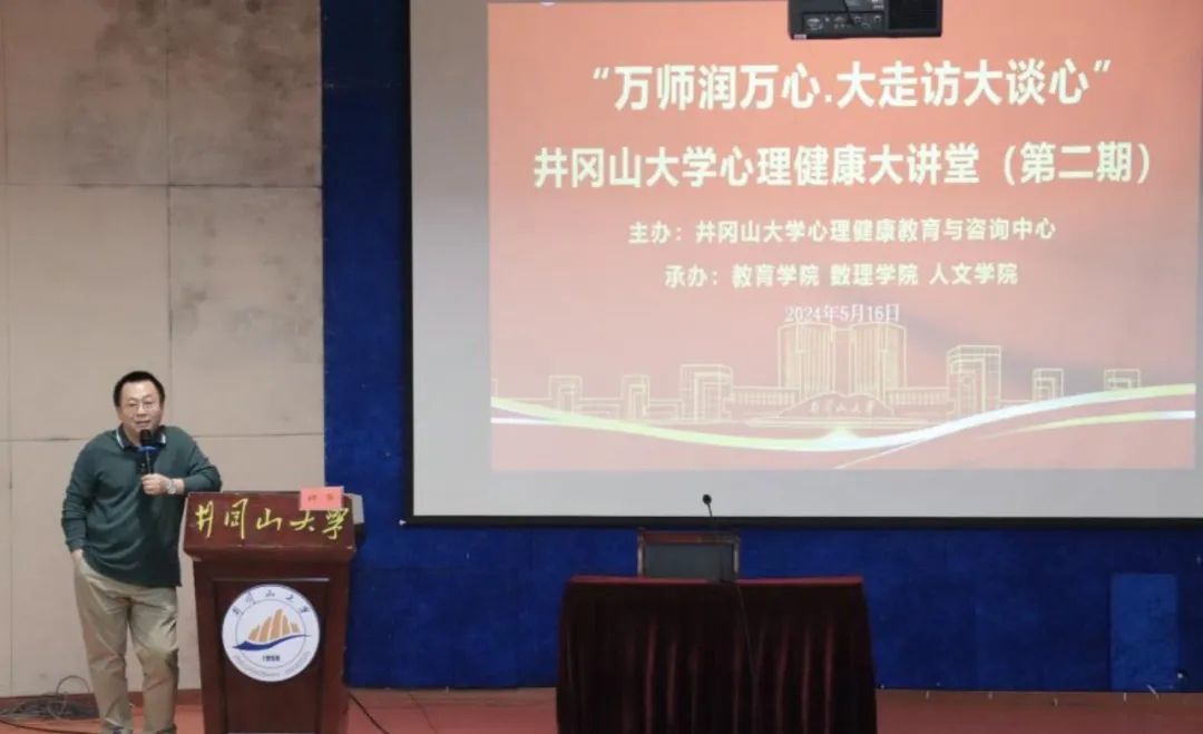 为全面学习贯彻党的二十大精神,落实《教育部办公厅关于开展首个全国学生心理健康教育宣传教育月活动的通知》、江西省教育厅《关于组织开展2024年全省大学生“5·25”心理健康教育系列活动的通知》和《全省大中小学心理健康教育 “万师润万心·大走访大谈心”活动方案》要求,2024年5月16日下午,我校在10栋教学楼学术报告厅举办“万师润万心·大走访大谈心”心理健康大讲堂活动,本次活动特邀赣南师范大学心理健康教育与咨询中心钟华教授开展了《大学生人际交往关系不良的几种类型》主题讲座,活动由井冈山大学心理健康教育与咨询中心主办,人文学院、教育学院、数理学院承办,共计200余名师生参加。