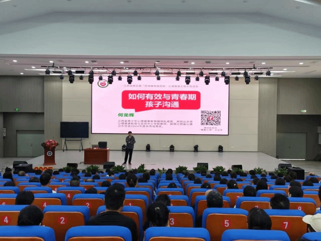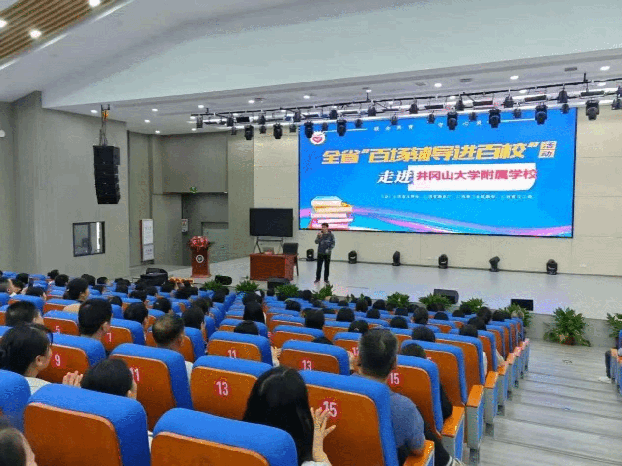 为进一步加强和改进新时代青少年心理健康工作,提升青少年心理健康素养,省文明办、省教育厅、省卫生健康委、省关工委联合主办的第五届江西省心理健康“百场辅导进百校”主题实践活动。于2025年4月28日下午,在井冈山大学附属学校报告厅进行。本次讲座由江西省青少年心理健康教育辅导队成员、我校心理健康教育与咨询中心专职教师何龙辉老师主讲,该校副校长、学校家庭教育指导中心主任以及五年级至八年级学生家长参加了本次讲座。
