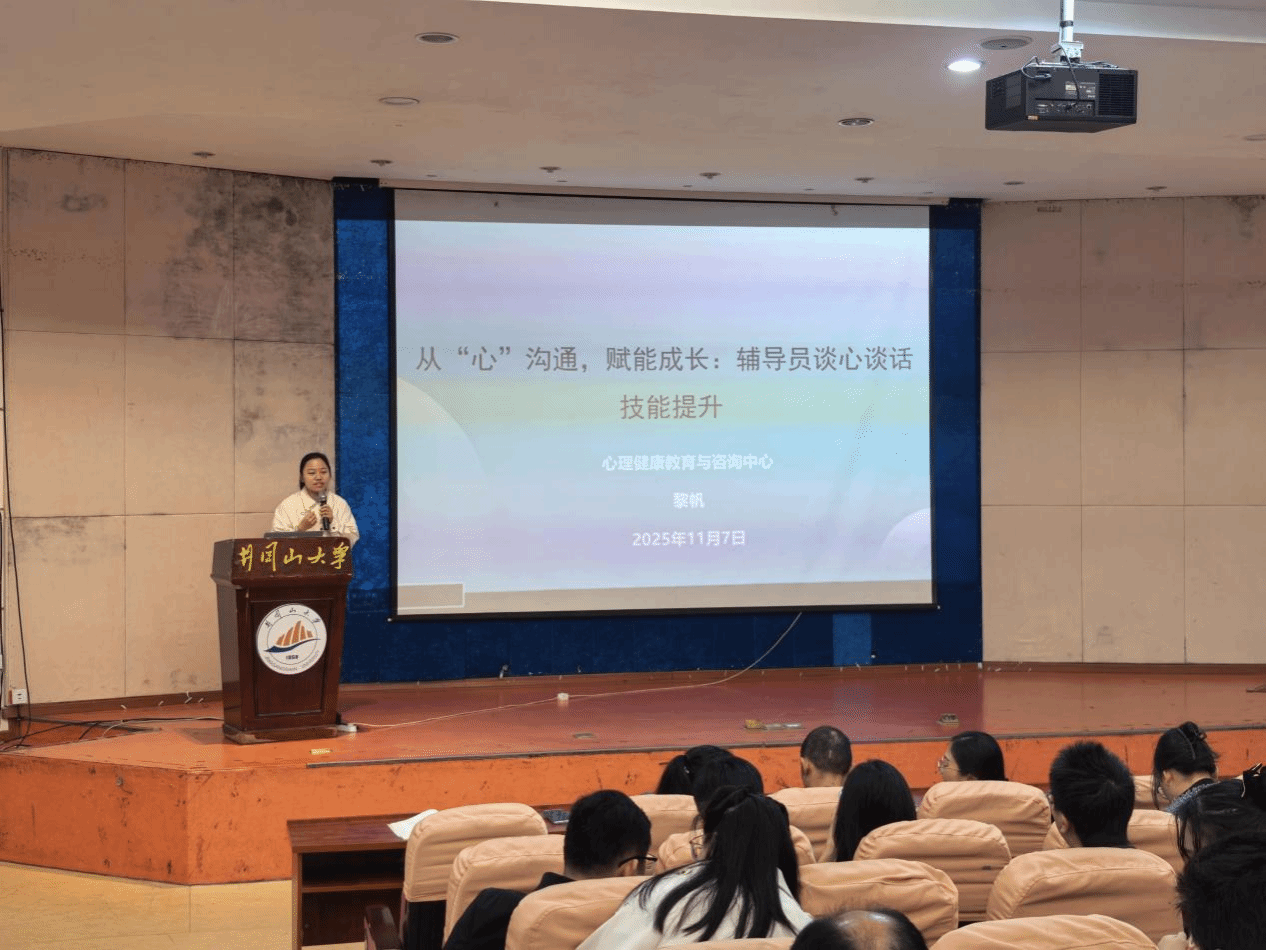 为全面提升我校辅导员队伍的心理育人水平,进一步夯实学生工作基础,11月7日上午,心理健康教育与咨询中心面向全体专职辅导员开展心理育人知识培训,培训主题为“从心沟通,赋能成长:辅导员谈心谈话技能提升”,培训由心理健康教育与咨询中心教师黎帆主讲,全校专职辅导员及心理健康教育专职教师参加了此次学习。